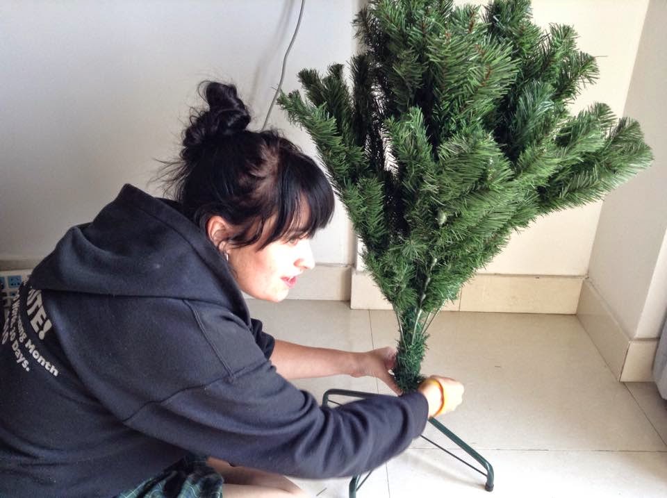 Our tree was almost not big enough to hold all of our ornaments. As Adam said as we sat back to admire our handiwork, "We already need a bigger tree!" It isn't much and it's nowhere near as much as my mother decorates our house (it seriously looks like Mrs. Claus lives in our house and I LOVE IT) but it is something and it helps bring some Christmas cheer to a country that basically has no idea what Christmas is all about.